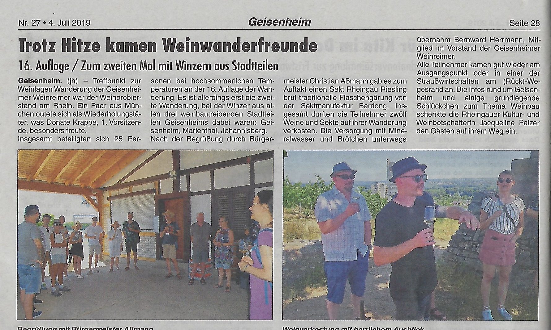 im Rheingau Echo 4.7.2019 – jh Beitrags-Navigation Sommerfrische, schattige Plätze & Sohns-WeineGeisenheim feiert seine „lebenden Legenden“