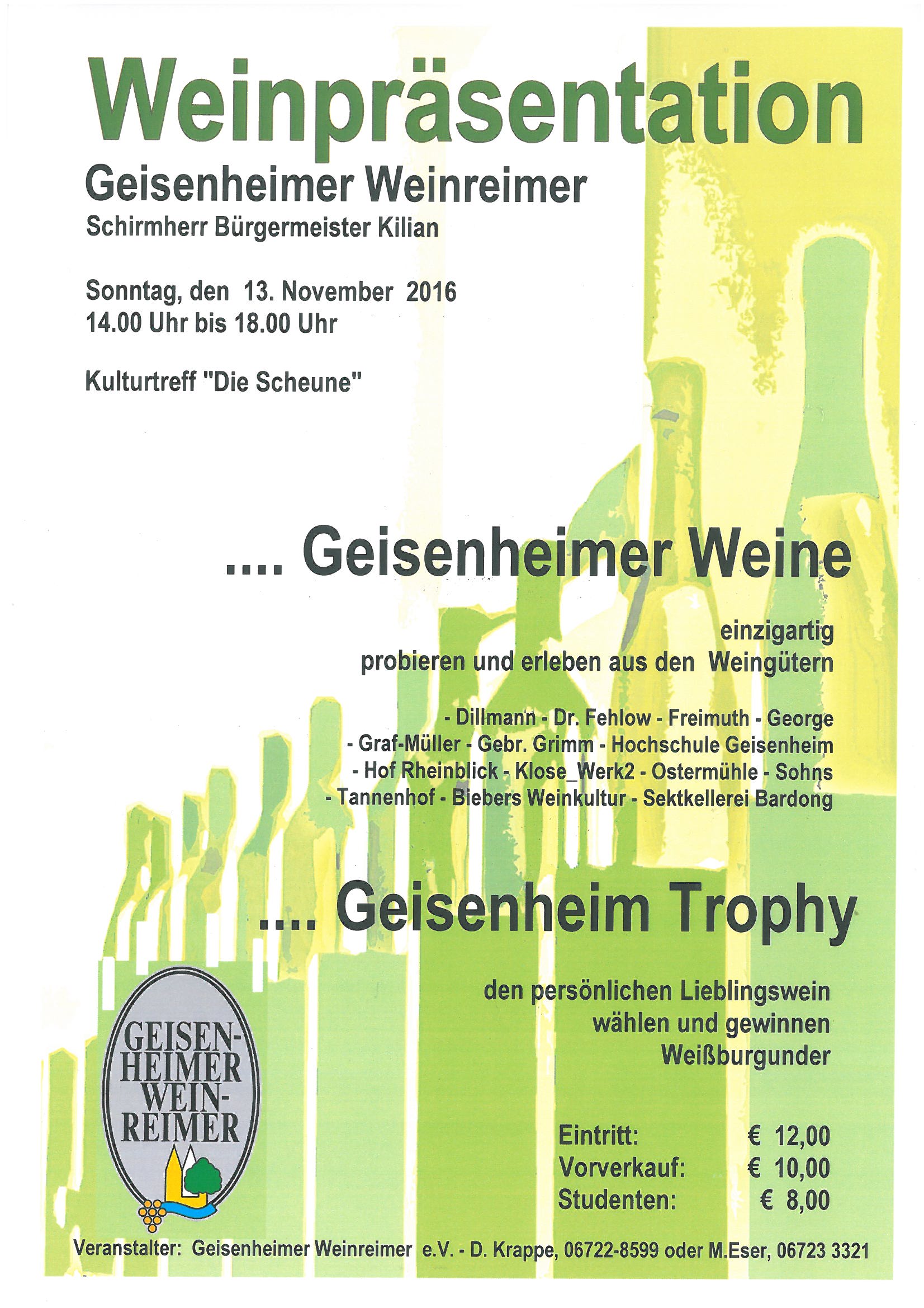 über unsere Homepage www.geisenheimerweinreimer.de Rubrik: Aktuelles
